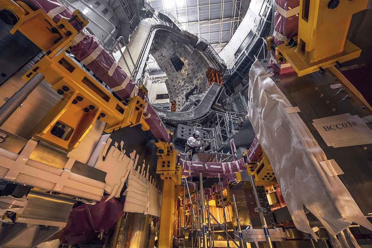 Il recente progresso segna un punto di svolta: è iniziato l’assemblaggio finale della camera a vuoto, lo spazio in cui verrà generato e controllato il plasma, una forma di materia che raggiungerà i 150 milioni di gradi Celsius, una temperatura molto superiore a quella del nucleo solare.